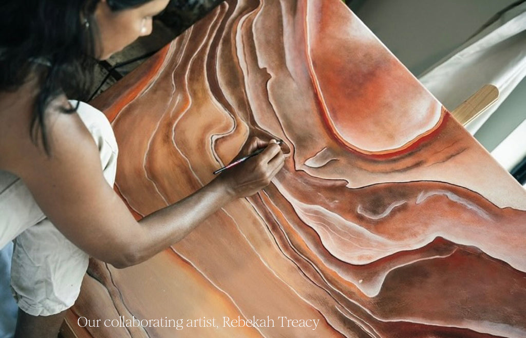 MAARA is proud to present Resort 2026 featuring the 'Layers of Reddell' an original Indigenous Australian artwork by Kija & Ngarinyin artist Rebekah Treacy.